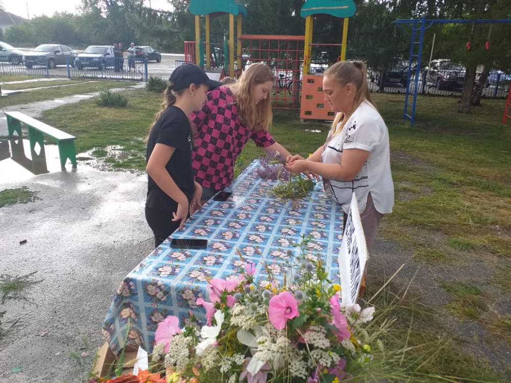 В Краснооктябрьском сельском Доме культуры организовали мастер класс по созданию венков. Жители из разнотравий плели красивые и яркие венки, у каждого получился - особенный. Все с большим удовольствием приняли участие.