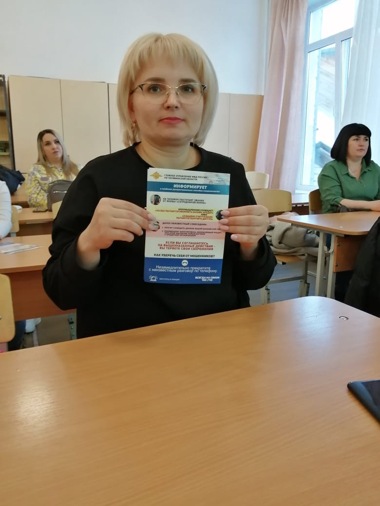 Представитель Общественного совета Мариям Дементьева на родительском собрании в МОУ СОШ № 1 с. Варна провела беседу с родителями о наиболее распространённых схемах мошенничества рассказала, что нельзя сообщать свои персональные данные незнакомцам, переводить деньги на неизвестные расчётные счета, переходить по сомнительным ссылкам в Интернете и вручила всем памятки.
