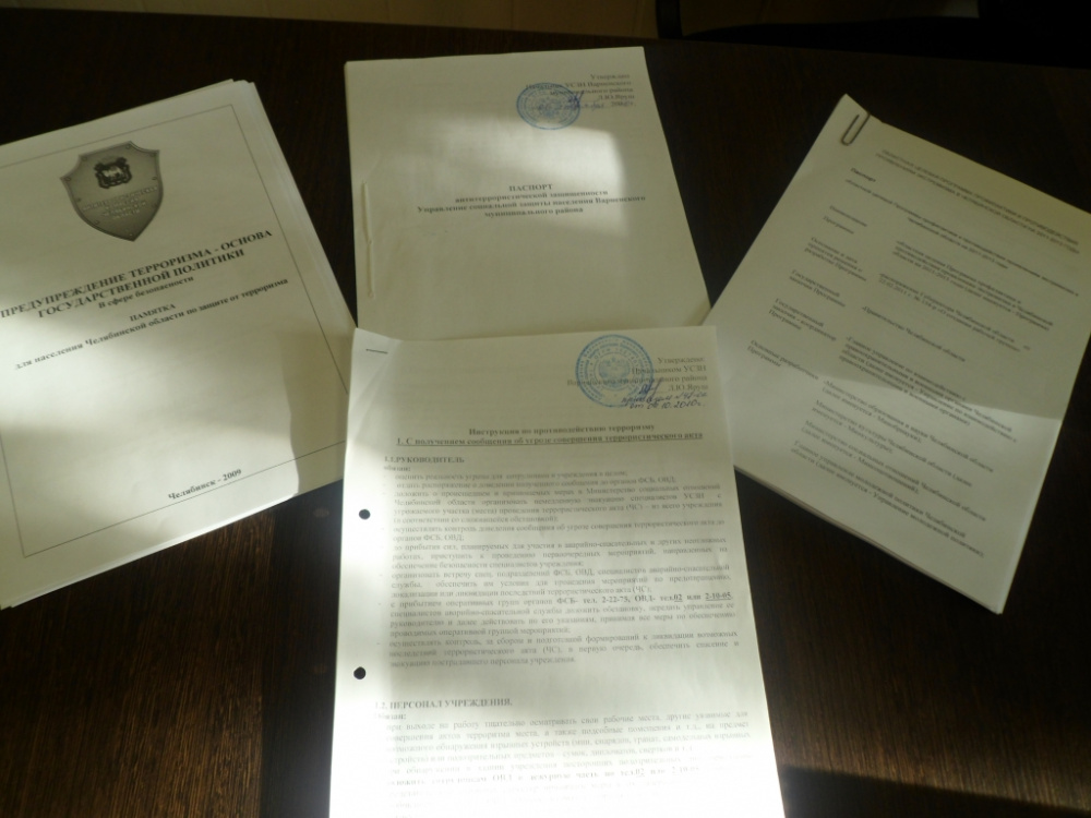 16.04.2013 г. в Управлении социальной защиты населения администрации Варненского муниципального района состоялся методический день «О мерах по усилению антитеррористической защищённости и технической оснащённости учреждений системы социальной защиты», участниками которого, стали руководители и ответственные специалисты по антитеррористической защищённости УСЗН, МУ «Комплексного центра», «Детского дома» Варненского муниципального района.