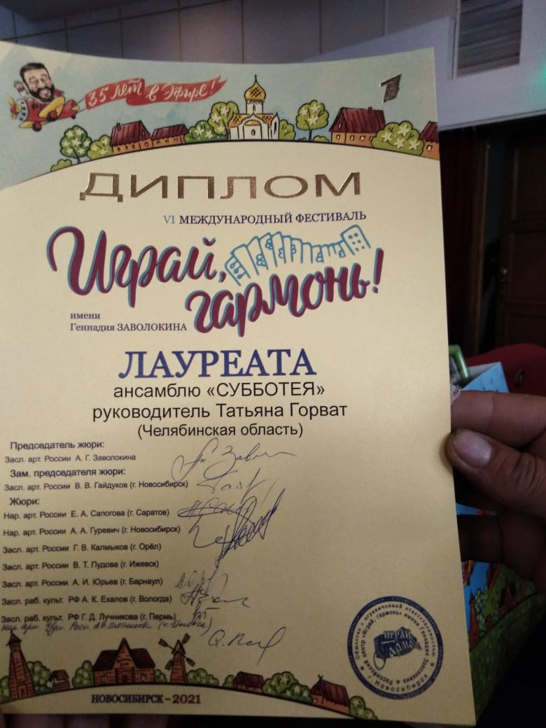 Поздравляем ансамбль «Субботея» с заслуженной наградой, желаем им новых успехов и достижений, творческого вдохновения!