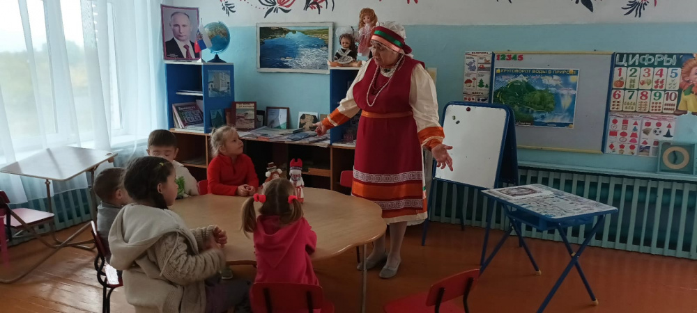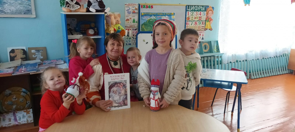 29 сентября в Кулевчинском детском саду, руководитель филиала Центра Национальных культур Мордовской казачьей культуры – Маклакова Е.А. познакомила детей с мифологией Мордовского народа. Ребята знакомились с женскими костюмами Мордовских народов Мокша и Эрзя, Елена Анатольевна рассказала из каких элементов состоит костюм, чем похожи костюмы и чем они отличаются. Познакомила с Детской энциклопедией Валерия и Нины Юрченковых «Мордовское язычество», в которой рассказывается о древних Мордовских Богах, а красочные иллюстрации художника Николая Макушкина позволили увидеть их изображения. Дети с удовольствием слушали рассказы, а девочки даже примерили мордовский головной убор.