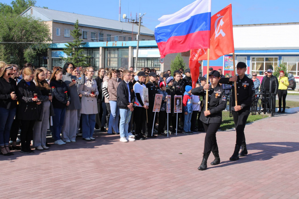 Собравшиеся склонили голову перед величием подвига нашего народа в Великой Отечественной войне, почтили их минутой молчания и возложили цветы к вечному огню.