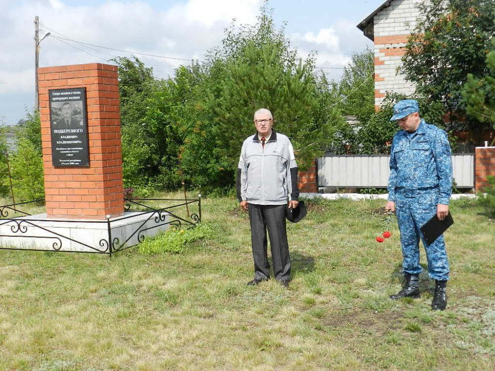 Торжественное построение руководства и личного состава отдела полиции, ветеранов и членов Общественного совета состоялось у мемориальной доски, памяти прапорщика милиции В.В. Подберезного, погибшего 19.07.2000 года при исполнении служебного долга в результате обстрела в г. Аргун Чеченской Республики.