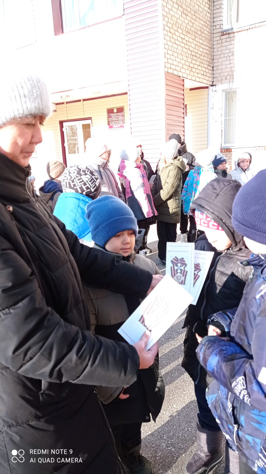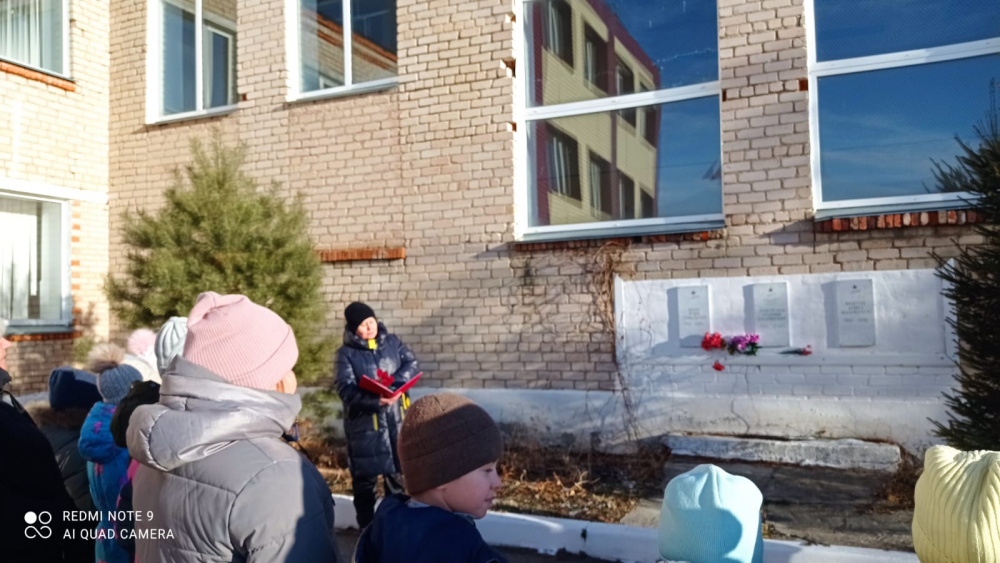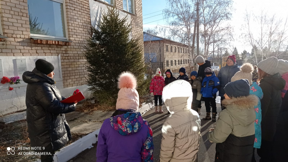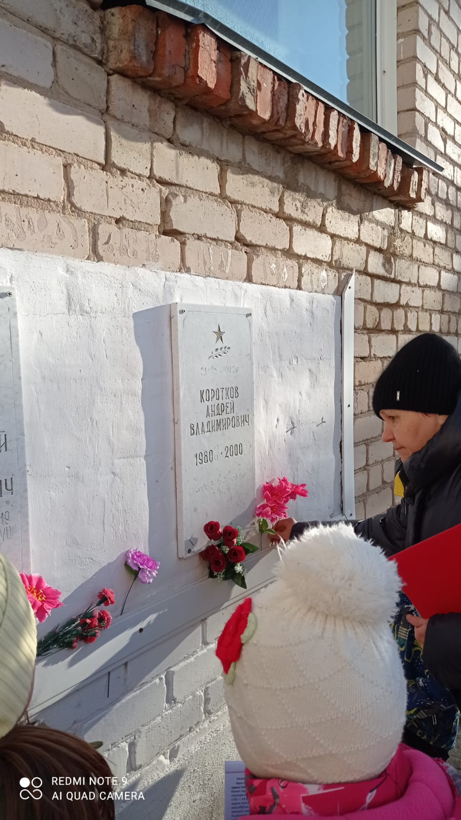 Здесь у мемориальной доски вспомнили об истории возникновения Дня Героев Отечества. Учащимся школы раздали памятки- буклеты «Орден Святого Георгия», в которых рассказана вся история Ордена и Георгиевской ленточки.