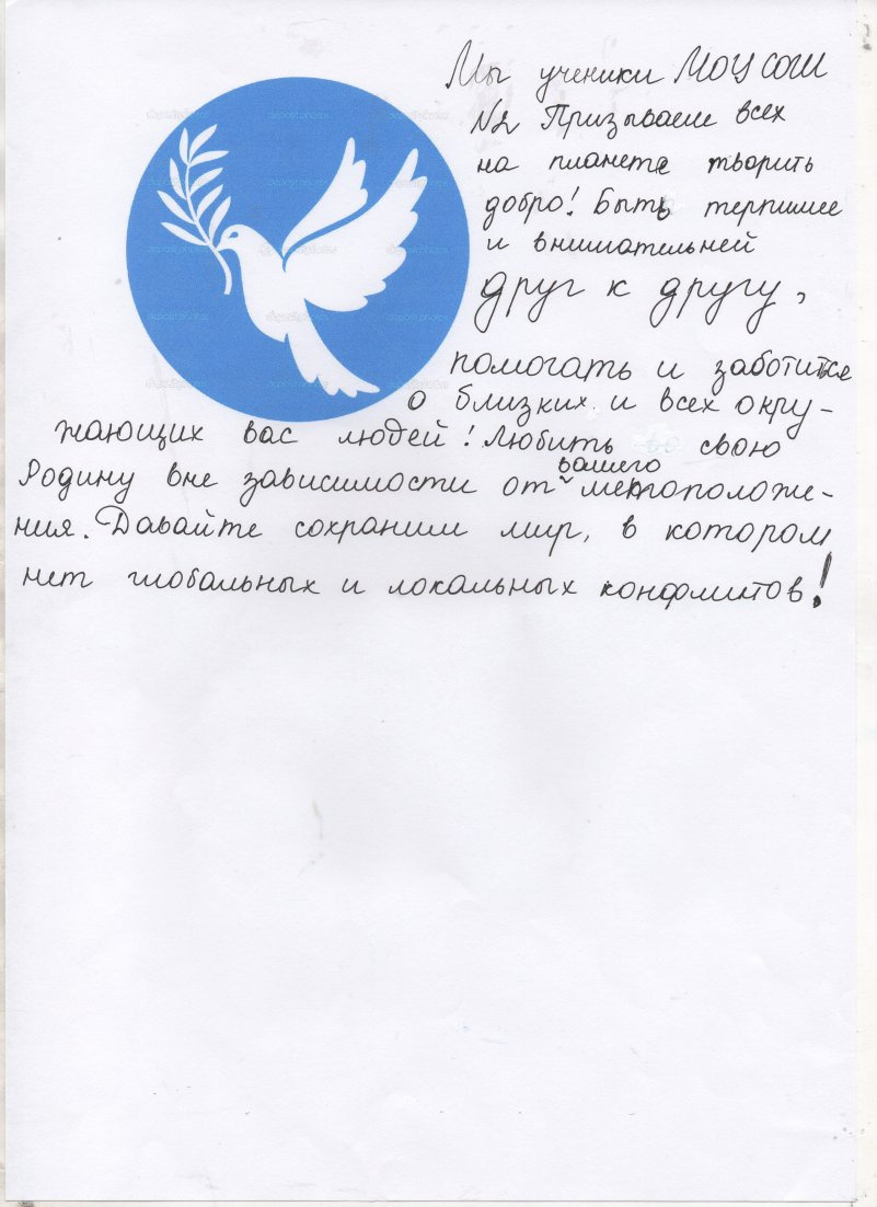 В конце форума его участники приняли резолюцию, в которой говорится о необходимости формирования активной жизненной позиции молодёжи по вопросам поддержания мира в нашей стране и во всём мире, и написали Письма мира.