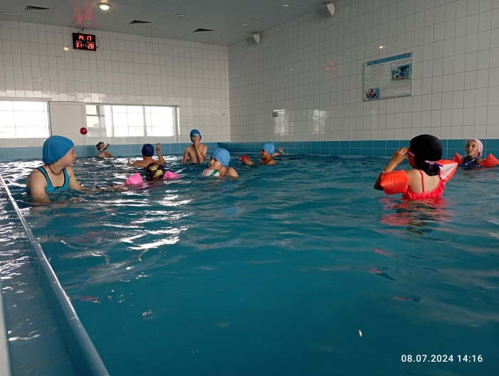 В бассейне коллектив под руководством начальника комплекса Копусяк Елены Ивановны с радушием встретили участников мероприятия. До начала сеанса плавания ребят познакомили с соблюдением санитарно-гигиенических норм, правилам безопасного поведения на воде. Во время купания детям дали в пользование плавательный инвентарь, который многие из детей увидели впервые. После сеанса плавания дети, получившие заряд бодрости, с воодушевлением поблагодарили коллектив ФОКа и выразили желание вновь посетить бассейн.