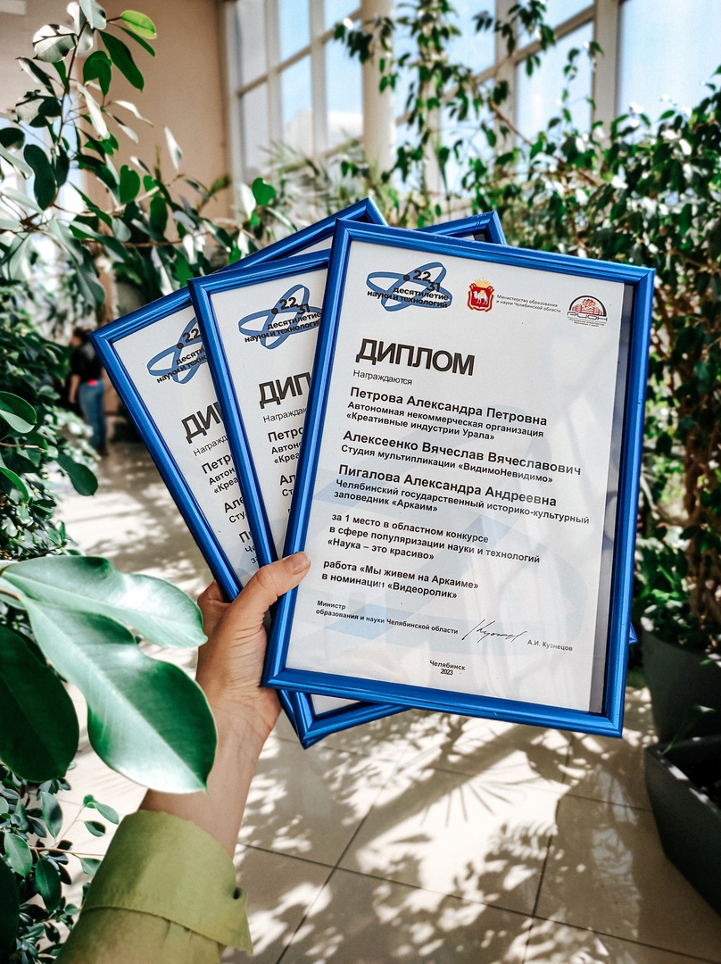 Копилка фестивальных наград мультфильма «Мы живем на Аркаиме» пополнилась дипломом министерства образования Челябинской области. Фильм об Аркаиме стал лучшим в номинации «видеоролик» конкурса в сфере популяризации науки и технологий «Наука — это красиво». Награждение победителей прошло в минувшие выходные.