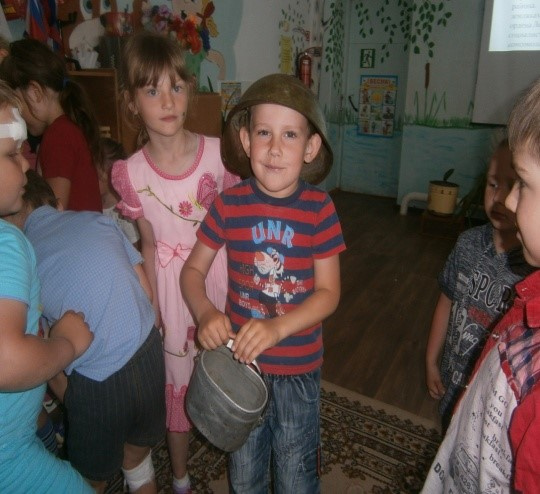 «Виртуальная экскурсия по музею», но и привезла с собой предметы музейной экспозиции. Ребята с огромным интересом рассматривали, трогали музейные предметы из отдела боевой славы - полевой телефон, солдатская каска, гильза от снаряда и многое другое. Дети научились управляться с ухватом - доставать им горшок из печи. Полученные знания помогли ребятам ответить на загаданные Татьяной Николаевной загадки.