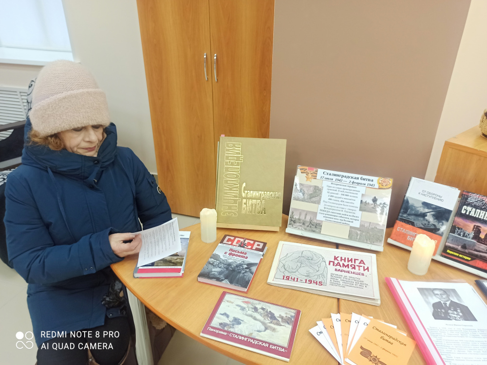 Сотрудники Варненской центральной библиотеки к 80-летию окончания Сталинградской битвы провели час мужества "Мужество и стойкость", на котором рассказали участникам о значении Сталинградской битвы.