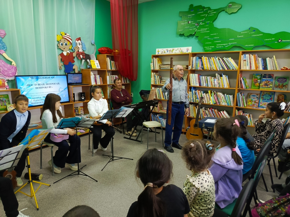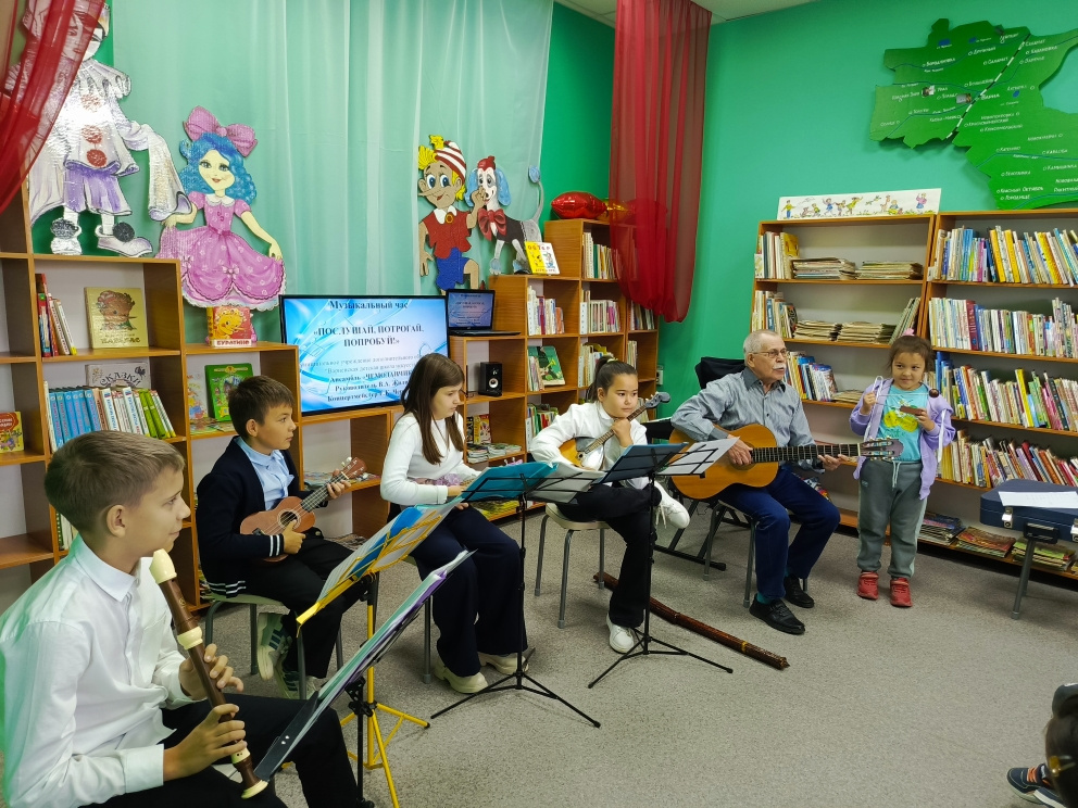 В преддверии Международного дня музыки и в рамках «Встречи с интересными людьми», 18 сентября 2025 года, в Варненской детской библиотеке прошел музыкальный час «Послушай, потрогай, поиграй».