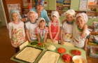 Пройдя курс молодого поваренка и инструктаж по безопасной работе с ножом и теркой, дети приступили к делу. Кто-то мыл и чистил овощи, кто-то резал кубиком и соломкой, кто-то шинковал морковь на терке. В процессе приготовления был объявлен конкурс на лучшее название для нашей пиццы. Победил Кирилл, предложивший название «Дружная» (так как ее готовили дружные ребята и все овощи в пицце дружат).