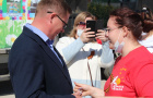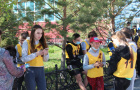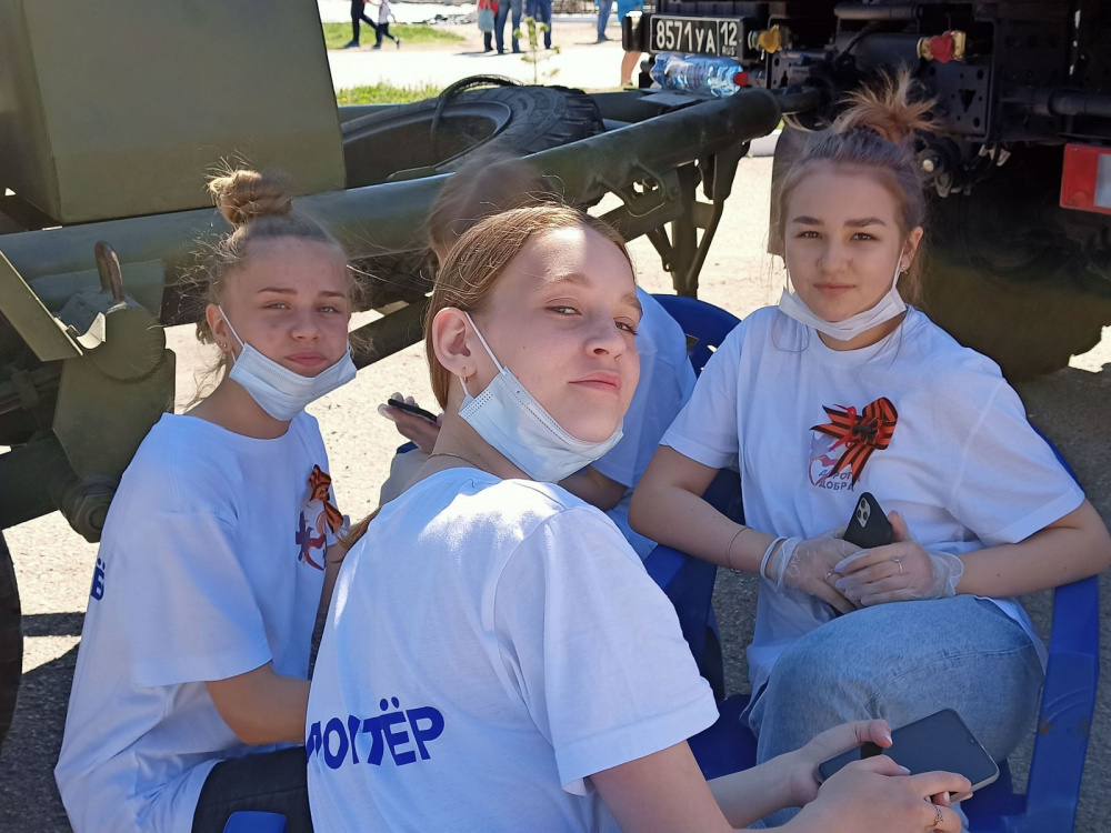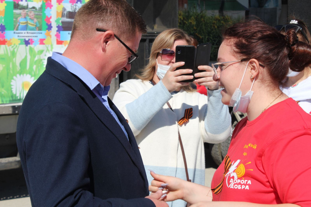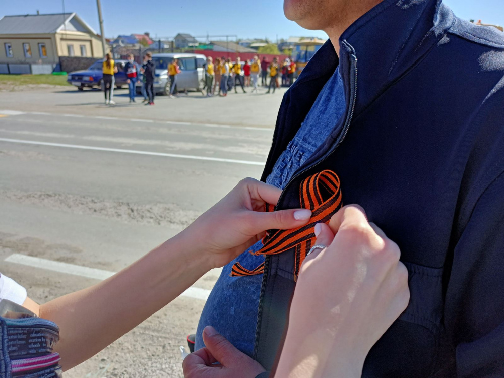 В начале мероприятия волонтёры центра «Дорога добра» организовали акцию «Георгиевская ленточка».