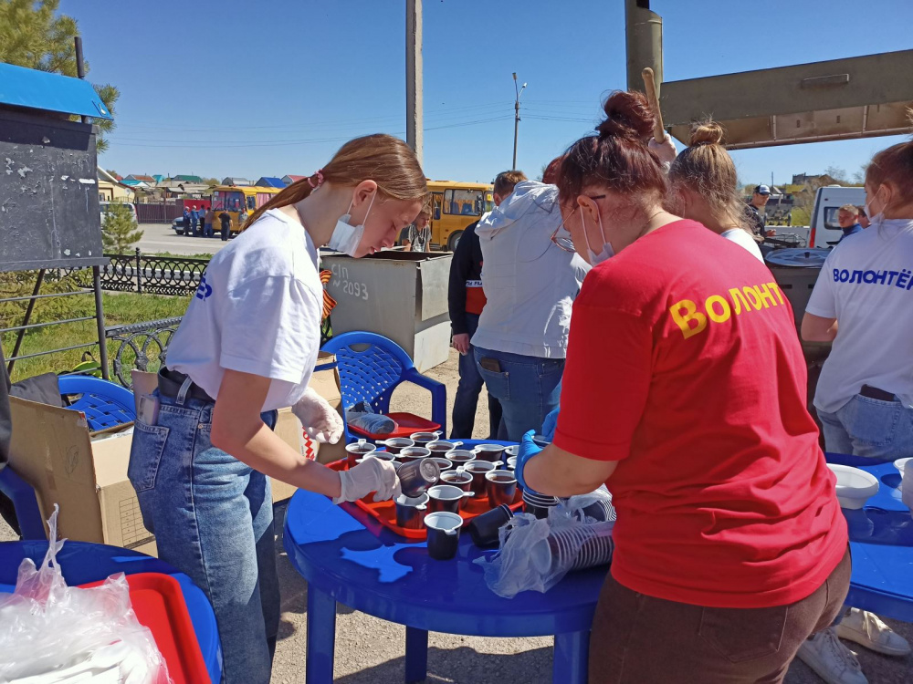 По окончанию забега всех участников эстафеты волонтёры центра «Дорога добра» и «Школы лидера» накормили кашей и напоили чаем.