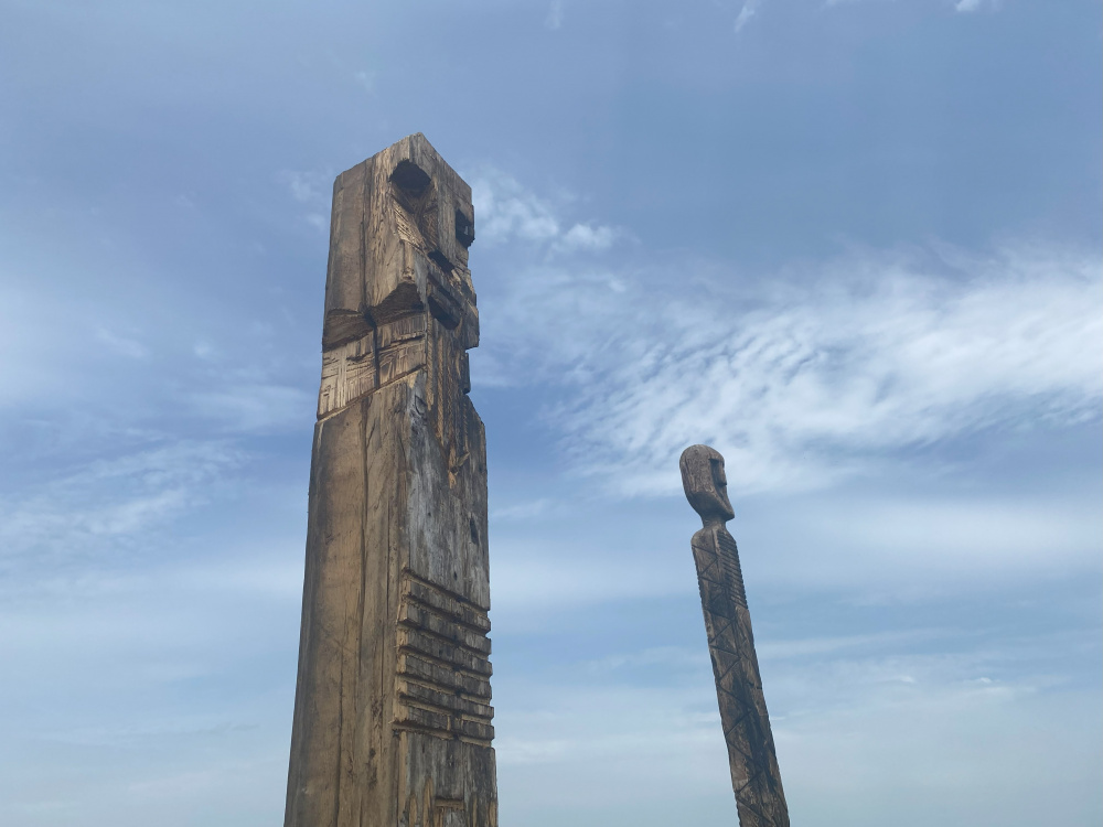 «На поселении Ботайской культуры, реконструкцию которой демонстрируют наши жилища каменного века обнаруживались следы так называемых столбовых ямок. Возможно, что у этих ямок было какое-то другое хозяйственное назначение, но нельзя исключать и того, что это следы установки каких-то деревянных изваяний, идолов. Поскольку дерево в наших грунтах сохраняется плохо, для воспроизведения внешнего вида этих идолов мы использовали образцы известных сохранившихся в болотах деревянных скульптур того времени и немного фантазии. Мы хотели, чтобы забор по границе музейного комплекса не был скучной оградой» - прокомментировал событие замдиректора Александр Кисленко.