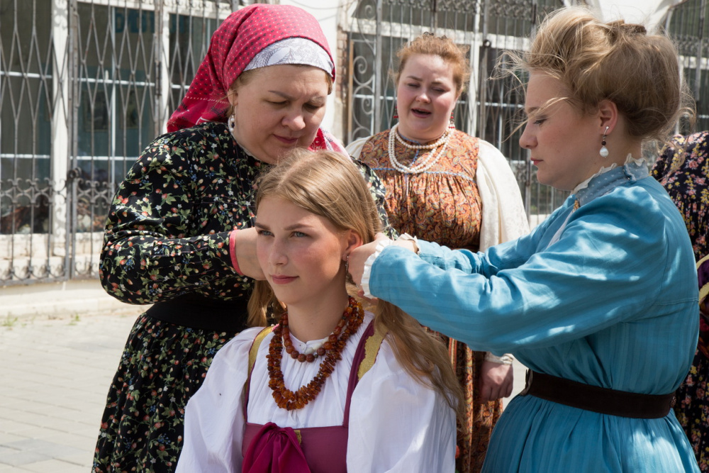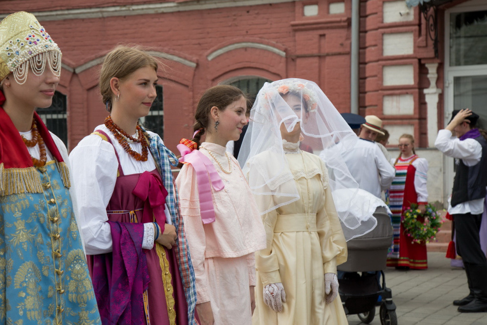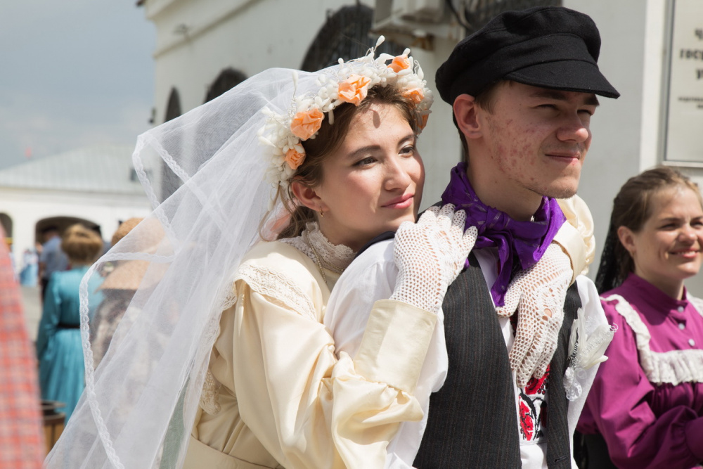 Зрители не только увидят дефиле невест, но и узнают о свадебных традициях разных народов, послушают обрядовые песни, поучаствуют в хороводе, а желающие даже смогут примерить старинный костюм.