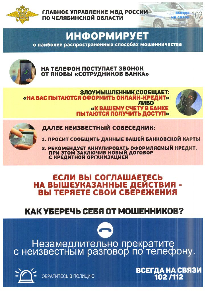 Напоминаем, что сотрудники банков не предлагают своим клиентам закрыть кредит дистанционно, не призывают оказать помощь в поимке мошенников посредством телефонного звонка. В случае беседы с лицом, представившимся сотрудником банка -постарайтесь сохранить спокойствие, если вам сообщили о подозрительных операциях по вашей карте или поданной заявке на кредит от вашего имени – немедленно прекратите разговор.