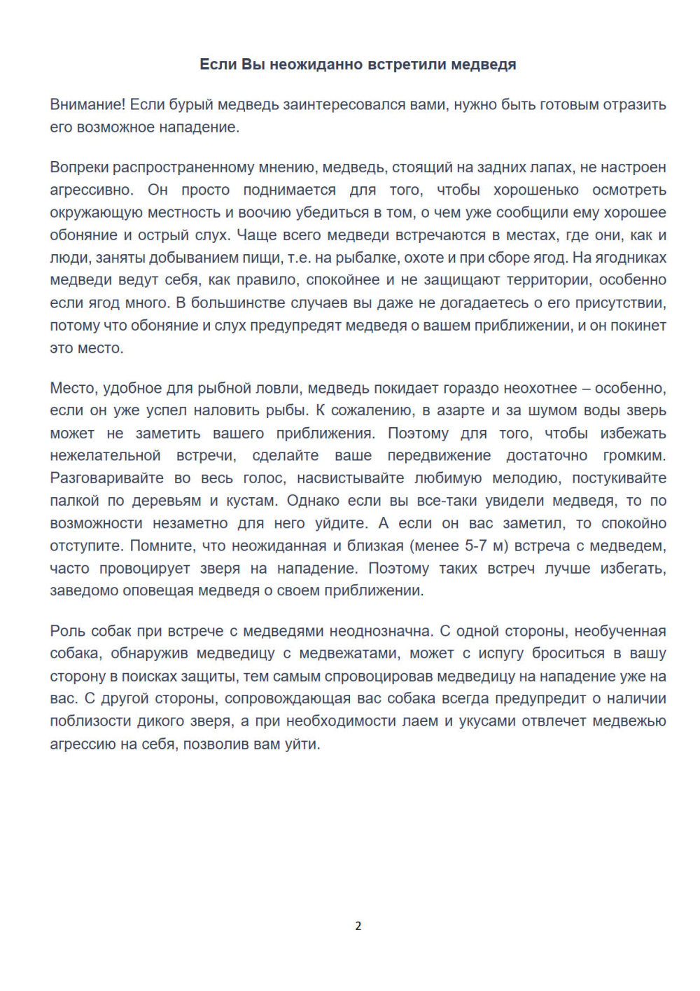 В случае обнаружения медведя необходимо сохранять спокойствие и соблюдать правила безопасности!