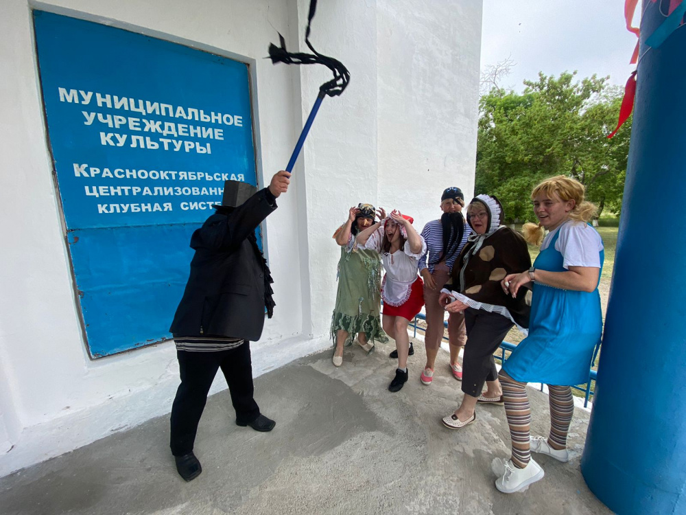 Краснооктябрьский сельский Дом культуры организовал праздничную программу для детей. Мероприятие прошло на улице. Ребят встречала ведущая в образе Пеппи длинный чулок, с ними сыграли в игры, в веселый танец они пустились с Красной шапочкой, а после отправились в путешествие в поиске волшебного цветка, на их пути повстречались: Баба яга, Бармалей, Пират, Черепаха Тортилла, Красная шапочка, с ними сыграли в игры : «Гусеница», «Ламбада», «Слепой водитель», «Шлюпка» и т.д после долгого путешествие, ребята отыскали все лепестки, а цветок оказался волшебным и подарил ребятам показ сказки «Колобок» в актовом зале. Ребята с большим удовольствием играли, прыгали и танцевали.