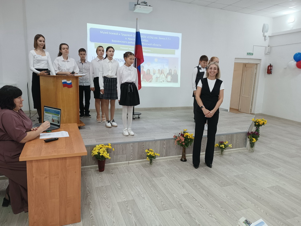 Сегодня в МОУ "СОШ им. Заика Л.Т." п. Красный Октябрь состоялась церемония открытия обновлённого школьного музея!