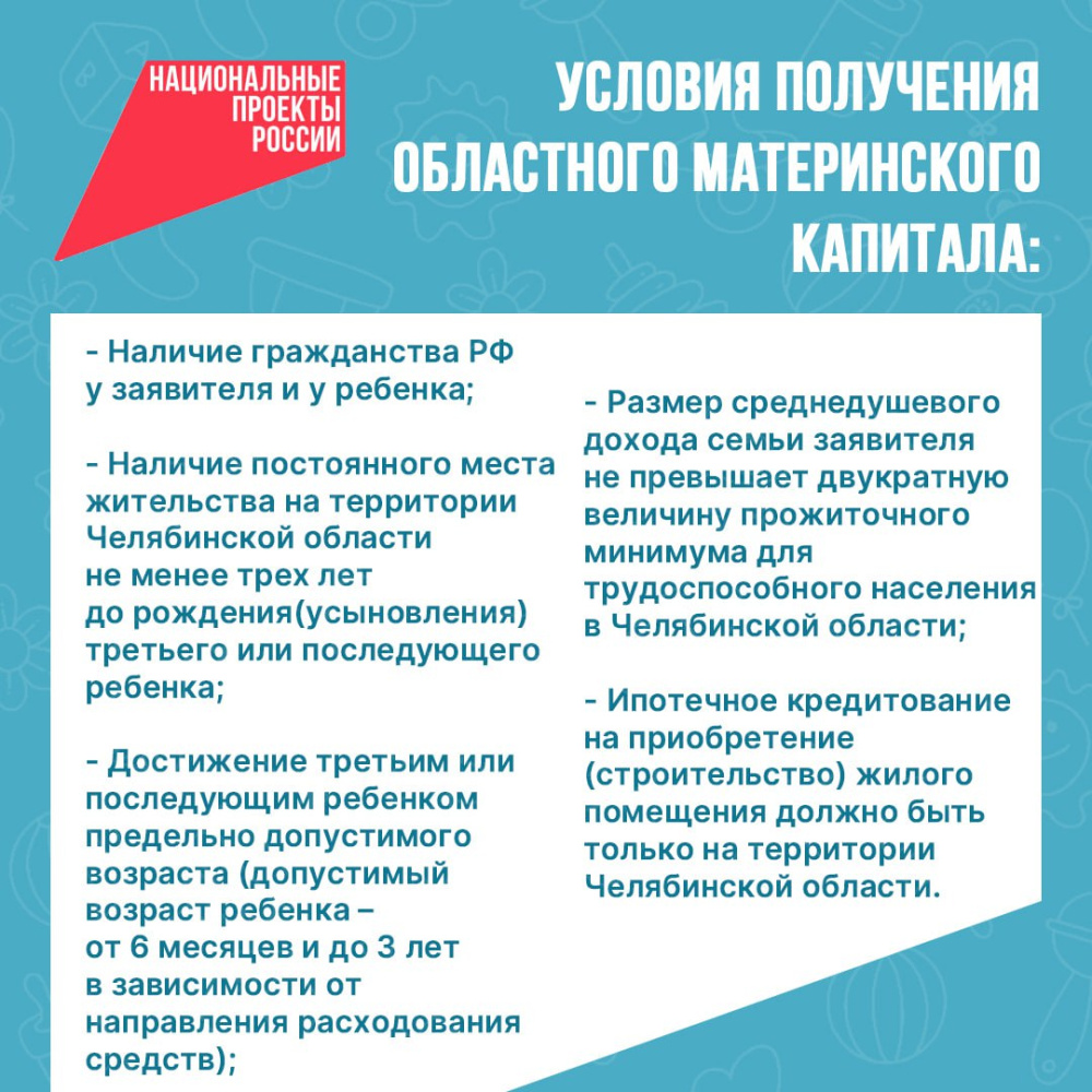 ​​​​​​​Областной материнский капитал – одна из самых востребованных мер социальной поддержки среди многодетных семей. Помощь гражданам предоставляется в рамках национального проекта «Семья», сообщает пресс-служба министерства социальных отношений Челябинской области.