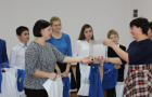 Мария Есенина - ведущий специалист отдела социальной политики компании вручила участникам экологической экспедиции и руководителям подарочные наборы. Футболки с логотипом Варненского района участникам вручила начальник Управления образования Яруш Людмила Юрьевна.