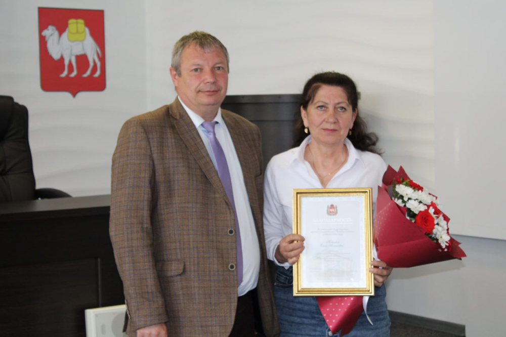 19 мая на аппаратном совещании глава Варненского муниципального района провел церемонию награждения. Начальник отдела экономики и сельского хозяйства администрации района, Елена Алексеевна Кабаева, была удостоена благодарственного письма губернатора Челябинской области за значительный вклад в развитие местного самоуправления и добросовестное выполнение служебных обязанностей.