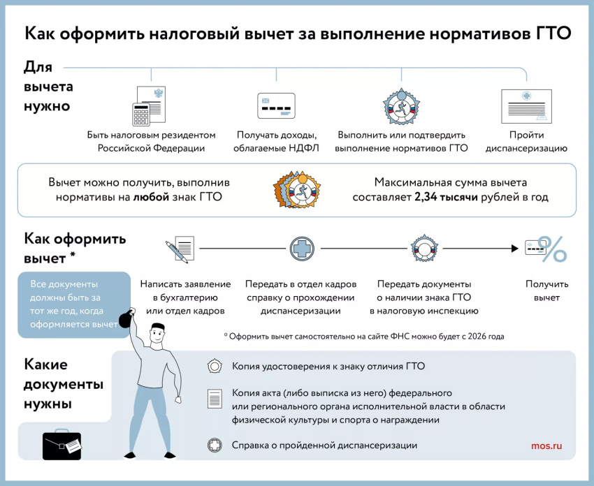 Получение налогового вычета за выполнение норм Всероссийского физкультурно – спортивного комплекса «Готов к труду и обороне» стало возможным.