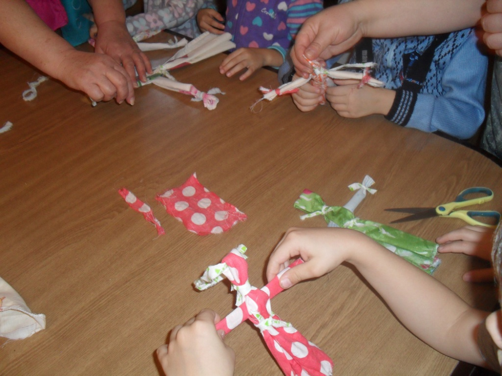 В конце праздника прошёл мастер –класс, на котором ребята своими руками с помощью взрослых смастерили тряпичные куклы – обереги.