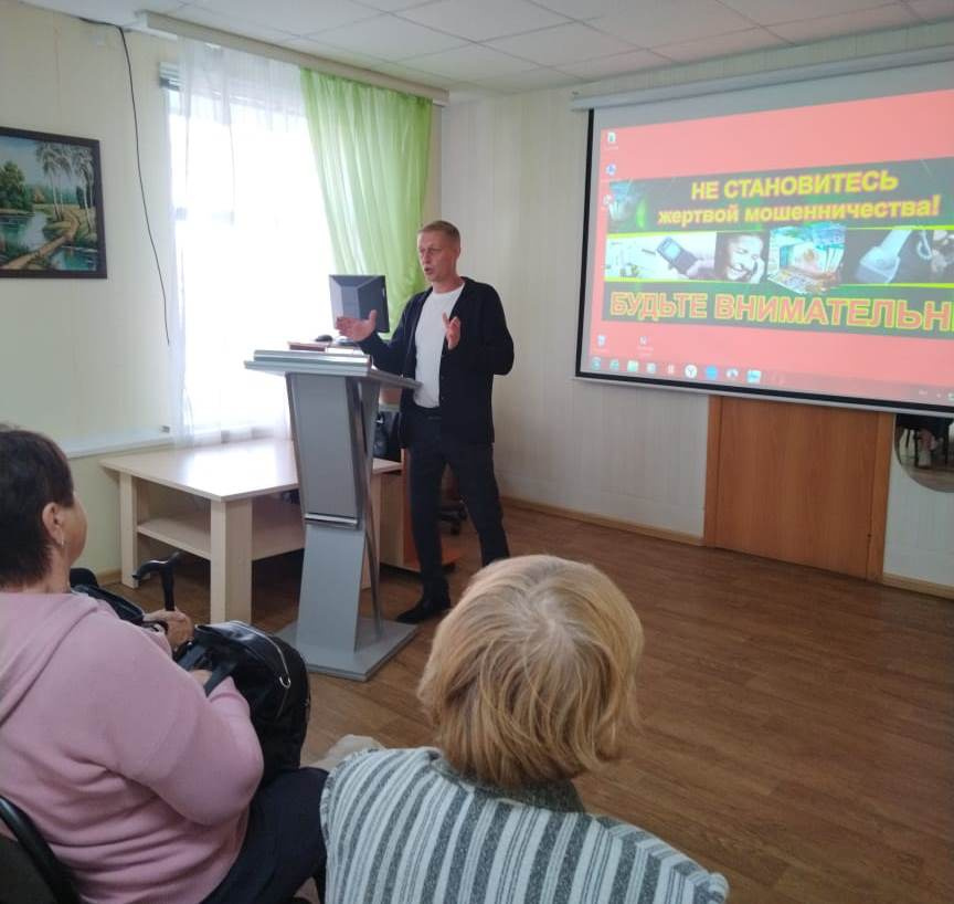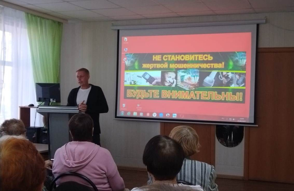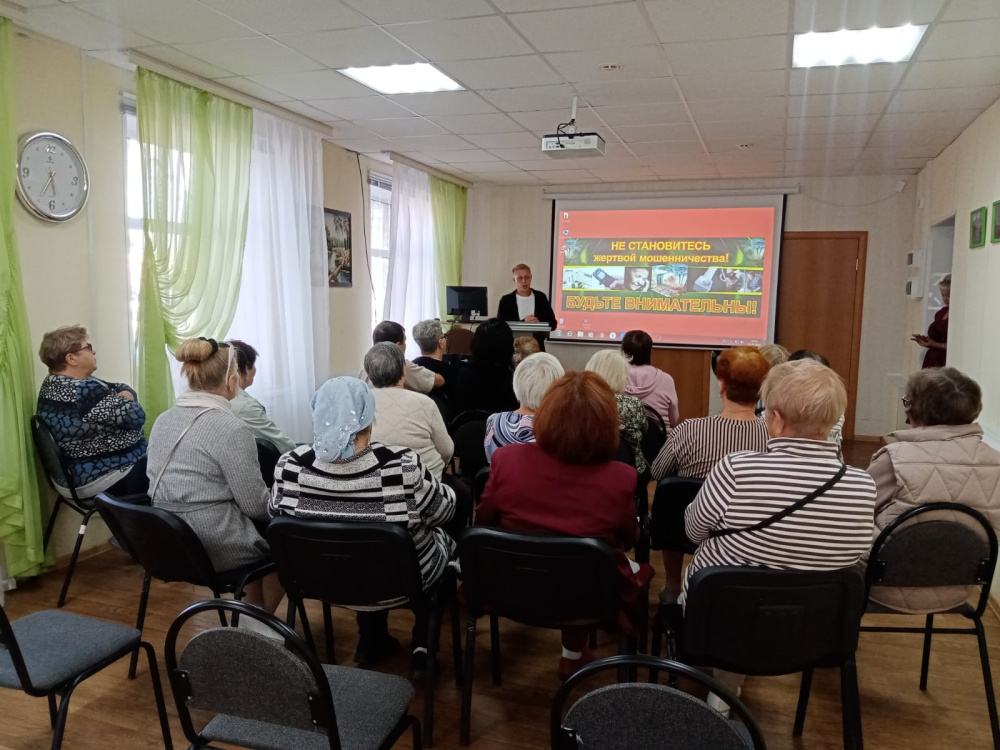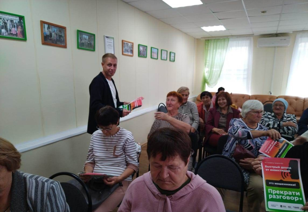 Алексей Сергеевич в доступной форме рассказал участникам встречи о том, как защитить себя и своих близких от мошенников, как отвечать на незнакомые номера. О необходимости самозапретов на оформление кредитов и сделки с имуществом.