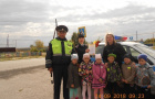 Дети смогли рассмотреть патрульную машину, узнали что такое спецсигнал, жезл, форма сотрудника. Ребята подарили гостям на память аппликацию «Безопасная дорога». Стихи про правила дорожного движения было слышно далеко, так как дети рассказывали их через СГУ (сигнально-голосовое устройство). Также были подготовлены рисунки на тему: «Не спеши, водитель!», которые дети подарили водителям, проезжающих мимо автомобилей.
