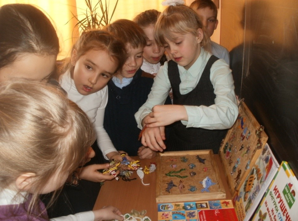 16 марта библиотекарь читального зала Уржумова Н.В. в гимназии им. Карла Орфа провела творческую работу. Ознакомила с книгами по бисероплетению, показала готовые изделия, которые можно плести из бисера. Далее с ребятами вспомнили сказки, где присутствует героиня – сказочная рыбка. Это сказка Пушкина «Золотая рыбка» и сказка «По щучьему веленью», а также была проведена творческая работа по бисероплетению «Золотой рыбки». В конце мероприятия был подведён итог и дети продемонстрировали свои работы.