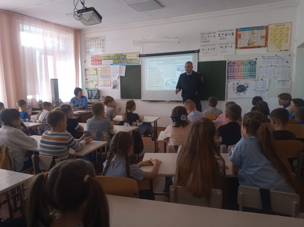 В целях повышения уровня правовой грамотности учащихся, информированности о том, что такое «можно», а что такое «нельзя» в школе и дома, профилактики распространения среди детей и молодёжи культуры насилия и формирования коммуникативных умений школьников был приглашён начальник ОУУП и ПДН ОМВД России по Варненскому району Наиль Ильясович Хасанов. Гость в погонах также обратил внимание ребят на то, что полицейским можно и нужно доверять, на них можно положиться в трудной ситуации.