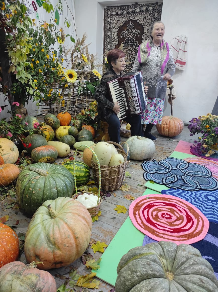Работники Дома культуры оформили фотозону из цветов и овощей, которые принесли жители поселения, Р.Г. Громут подготовила трогательное стихотворение.