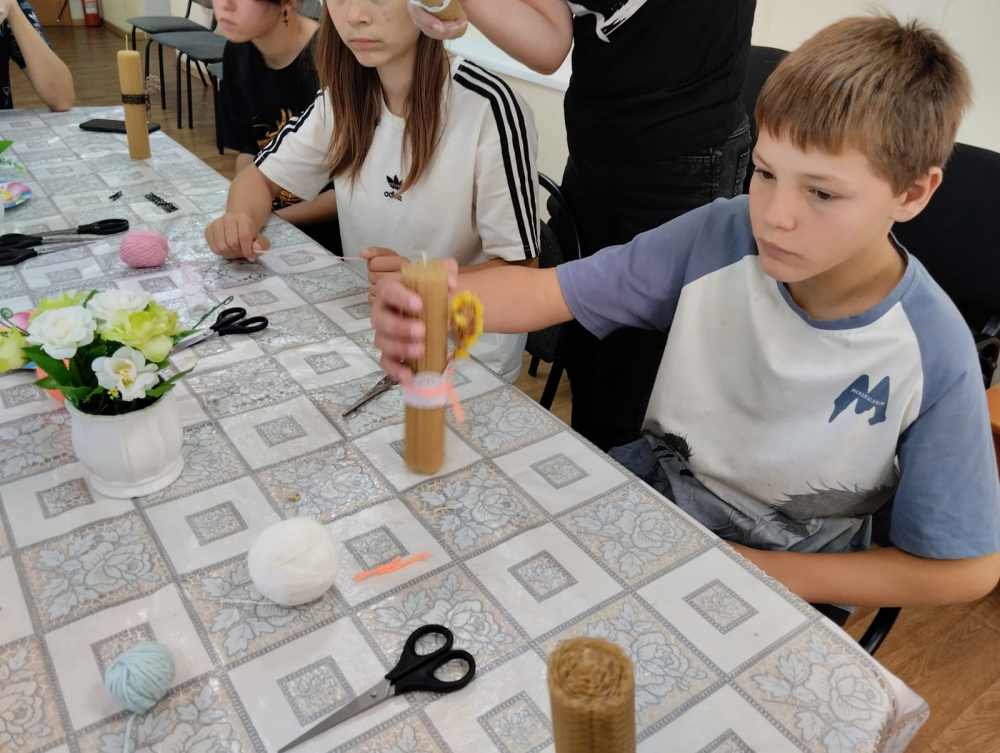 05.08.2024 г. специалисты отделения помощи семье и детям МУ «Комплексный центр социального обслуживания населения Варненского муниципального района Челябинской области» вместе с серебряным волонтером Селиверстовой А.Ш. провели мастер-класс по изготовлению свечей из вощины с детьми, состоящими на социальном сопровождении.