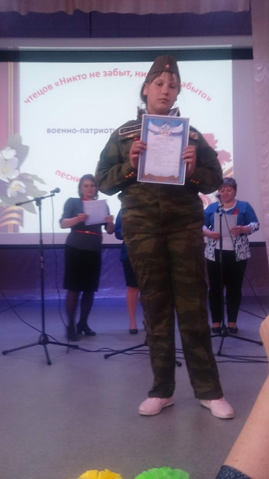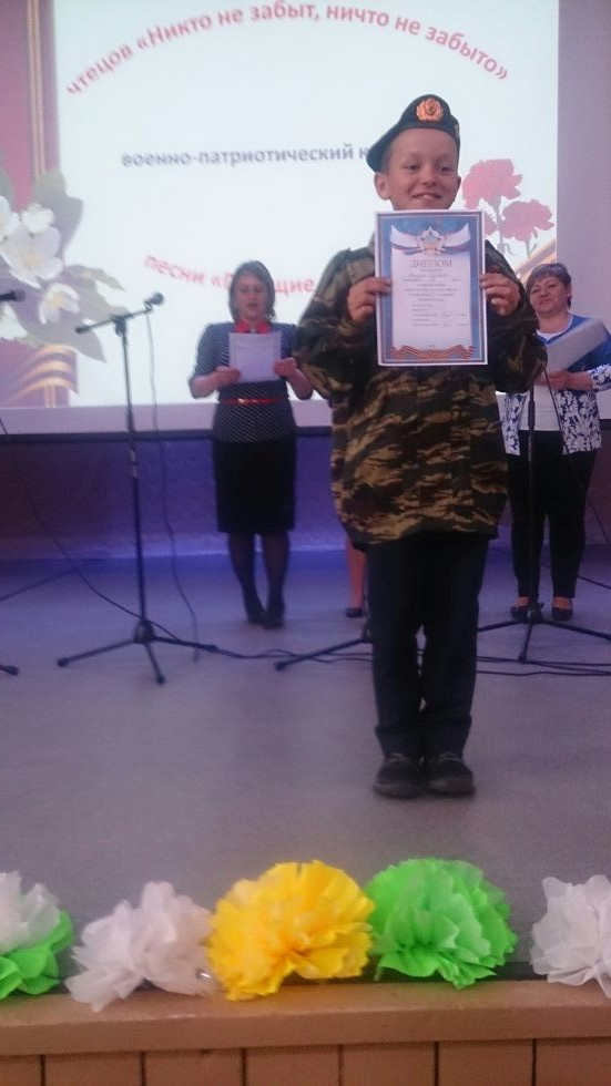 30 апреля в Краснооктябрьском сельском Доме культуры был проведён конкурс чтецов «Никто не забыт, ничто не забыто» и конкурс военно-патриотической песни «Поющие сердца», посвящённые 74 годовщине Великой Победы. В конкурсе приняли участие ученики МОУ СОШ им.Заика Л.Т. и воспитанники детского сада «Солнышко» п. Красный Октябрь. На суд жюри были представлены стихи и песни о Великой Отечественной войне. Ребята очень старались, выбрать победителя было сложно, но единогласно жюри отметило выступление. Победители конкурса чтецов «Никто не забыт, ничто не забыто»: Ангелина Александрова – I место, Дарья Березина- II место, Соня Князева-III место, а среди дошкольников Кристина Сташок– I место, Лиза Зарифулина и Ксения Ткаченко - II место, Полина Шанц-III место. Победители конкурса военно-патриотической песни «Поющие сердца»: Александра Захарова и Дарья Березина - I место, Карина Кударова - II место, гр. «Эльфы» -III место. Все участники отмечены грамотами за активное участие в данном мероприятии. Конкурс прошёл в тёплой творческой атмосфере. Детям очень понравились стихи и песни, было видно, что каждый участник, вкладывает душу в своё исполнение. Организаторы праздника надеются, что стихи и песни о войне в исполнении детей оставили в душе светлые и радостные чувства.