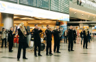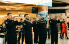 «В преддверии Нового года оркестр Культурного центра ГУ МВД России по г. Москве устроил флешмоб в столичном аэропорту Внуково. О начале акции возвестили звуки ударных в фойе одного из терминалов. После этого с разных сторон стали появляться музыканты: они спускались по эскалатору, выходили из-за стоек регистрации и рекламных стендов. Среди ничего не подозревавших пассажиров за считанные минуты собралось 37 полицейских в парадной форме и с музыкальными инструментами. Только тогда зрители поняли, что стали свидетелями необычной новогодней акции от МВД России», - сообщила официальный представитель МВД России Ирина Волк.