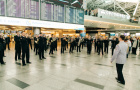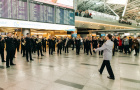 Пассажиры с удовольствием снимали флешмоб на камеры мобильных телефонов, подпевали и даже танцевали.