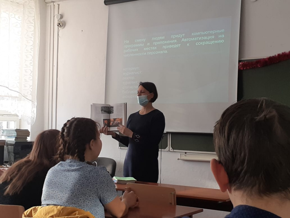 18 декабря 2020 года в 9 классе МОУ СОШ № 2 прошла беседа-презентация «Новому времени - новые профессии», на которой ребята познакомились с современными профессиями, востребованными на рынке труда. Также библиотекарь рассказала о редких и новых профессиях. Провели мониторинг профессий, востребованных в 2020 году и те, которые будут занимать высокий рейтинг в 2021 году. А также рассмотрели «вымирающие» профессии и нужные рабочие специальности. Были проведены: игра-разминка, игра-профсловарь и викторина «В мире профессий».