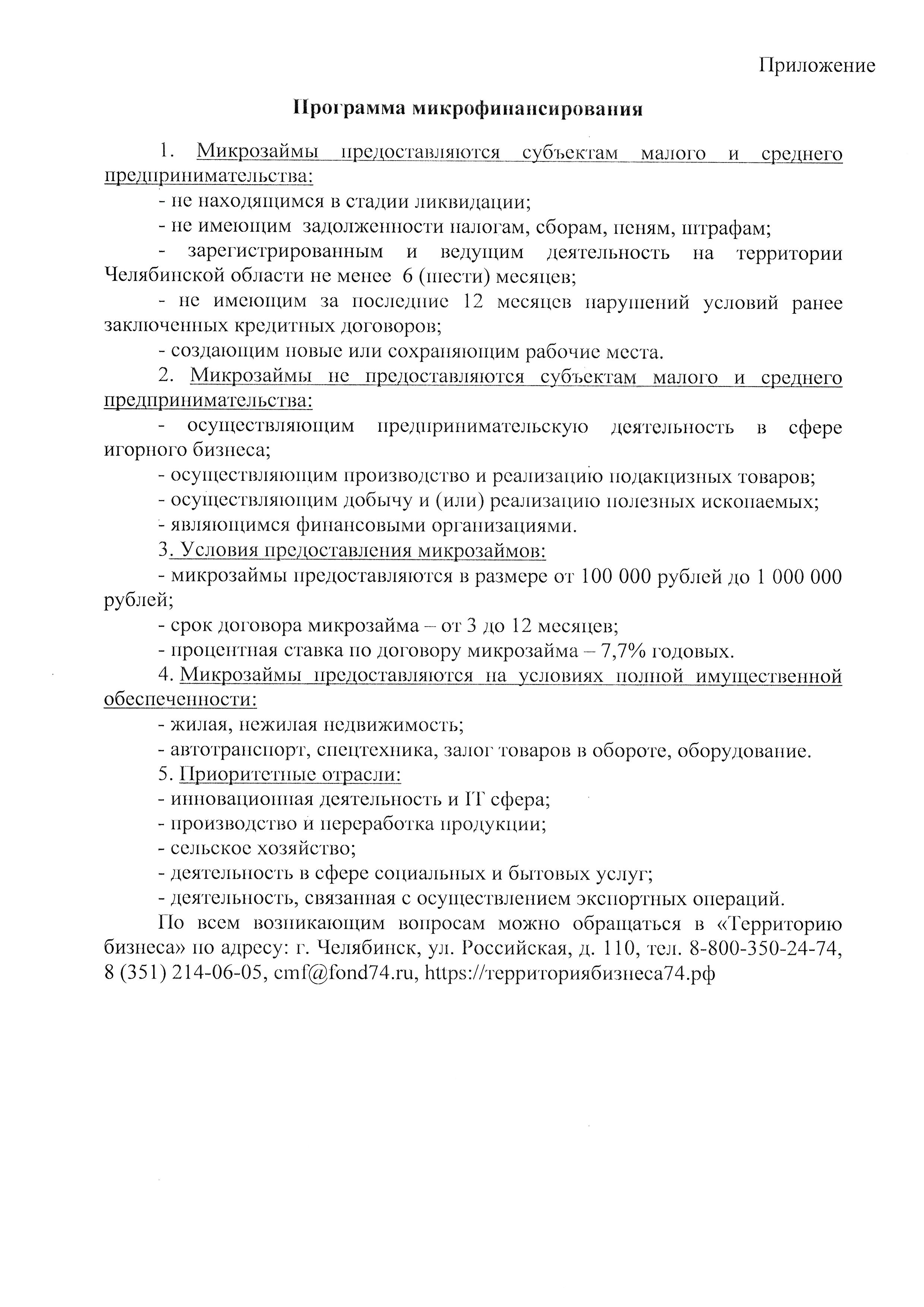 В 2017 году по поручению Губернатора Челябинской области Б.А.Дубровского с целью обеспечения доступности субъектов малого и среднего предпринимательства к финансовым ресурсам создан Фонд «Центр микрофинансирования Челябинской области» (Микрокредитная компания).