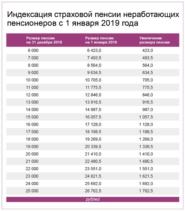 С 1 января 2019 года страховые пенсии неработающих пенсионеров проиндексированы на 7,05%, что выше показателя прогнозной инфляции за 2018 год. Размер фиксированной выплаты после индексации составил 5334,2 рубля в месяц, стоимость пенсионного балла увеличилась до 87,24 рубля.