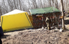 Бойцы поискового отряда «ВАРНА. ПОИСК» прибыли к месту расположения лагеря в урочище Гайтолово Кировского района Ленинградской области. Установили палатку. Завтра начинаются трудовые будни.
