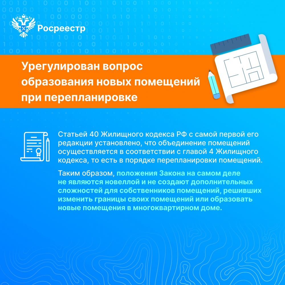 До 01.04.2024 за внесением в ЕГРН сведений о выполненной перепланировке собственники помещений должны были обращаться самостоятельно. После вступления в силу изменений за них это будут делать ОМС, принявшие решение о согласовании такой перепланировки.