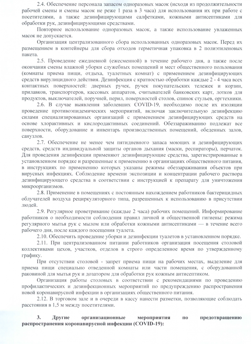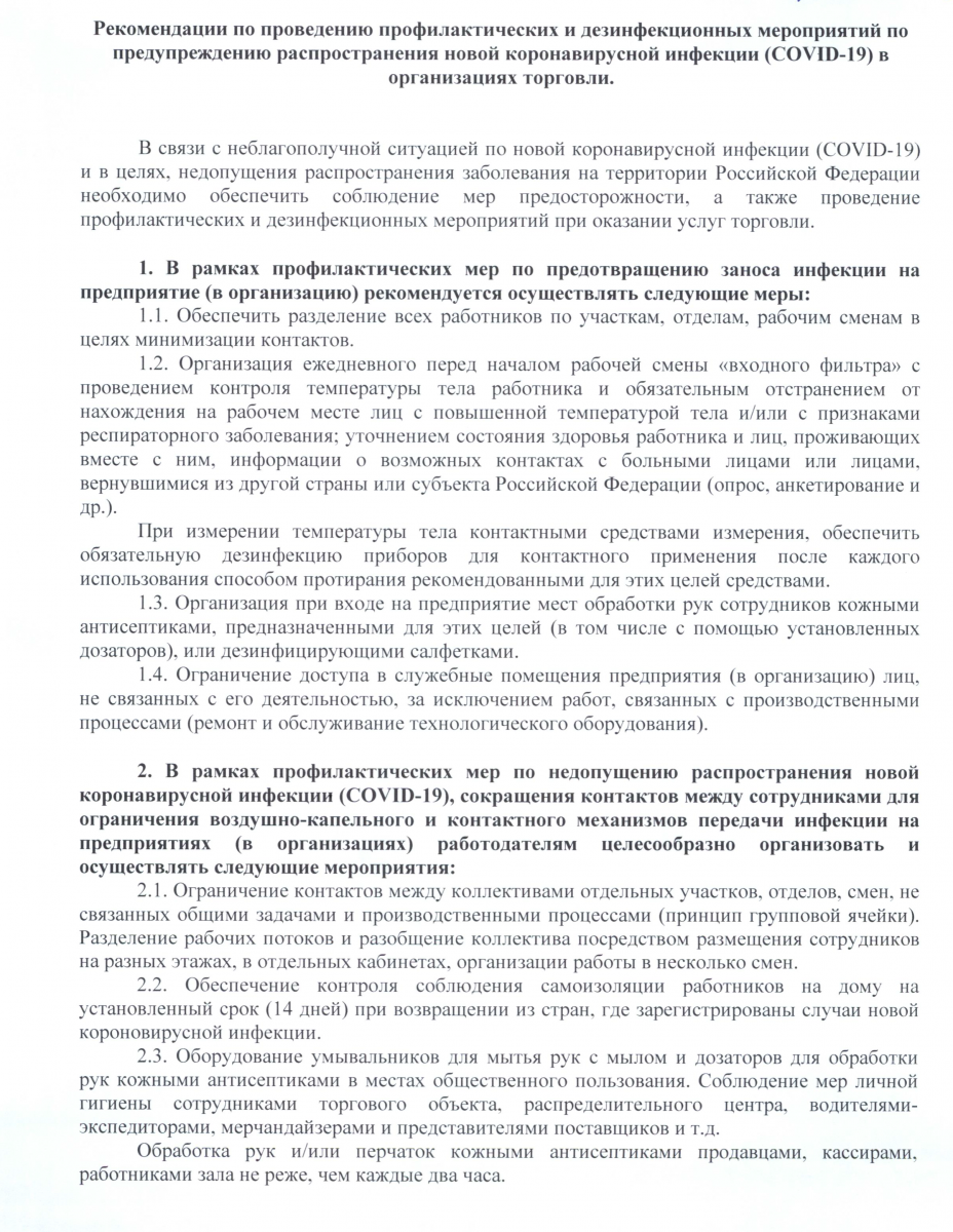 О проведении профилактических и дезинфекционных мероприятий в организациях торговли