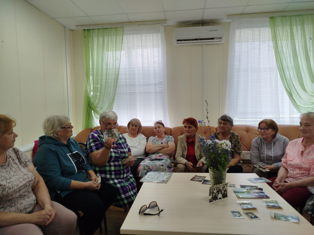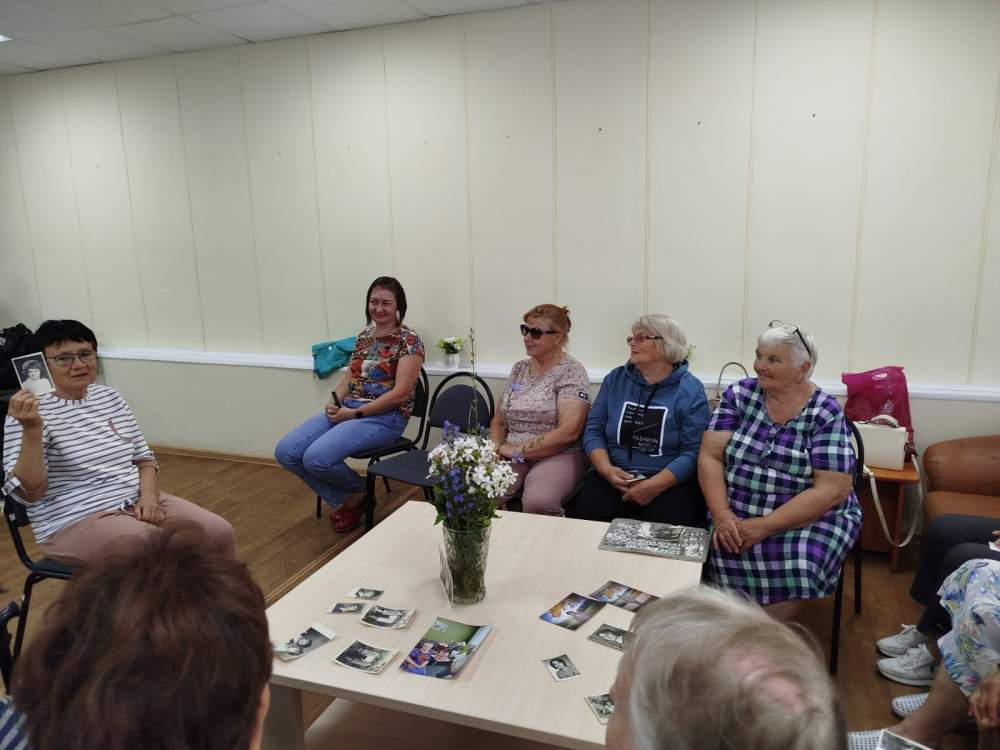 Далее участники группы познакомились с первым блоком Проекта «Ретро терапия». Присутствующие поделились воспоминаниями детства, юности и молодости. С ностальгией рассматривали старые потёртые фотографии из своих семейных альбомов, испытывая при этом чувства, эмоции, пережитые в прошлом. Рассказывали интересные смешные истории из своей жизни: мой первый учитель, отдых в пионерском лагере, жизнь в стройотряде, моя первая любовь, моя семья.
