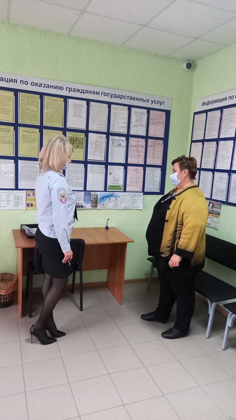 С работой отделения представителей общественности познакомила начальник отделения майор полиции Олеся Самокиш. Она обозначила весь спектр госуслуг, предоставляемых населению, рассказала о сотрудниках и специфике деятельности каждого из них. Олеся Сергеевна отметила, что небольшой, но слаженный коллектив из пяти человек долгое время работает вместе и отличается высокой сплоченностью, трудолюбием и умением выполнять поставленные задачи. Представители Общественного совета узнали о процедурах выдачи паспортов, о принятии в гражданство Российской Федерации, об учете иностранных граждан, прибывающих на обслуживаемую территорию.