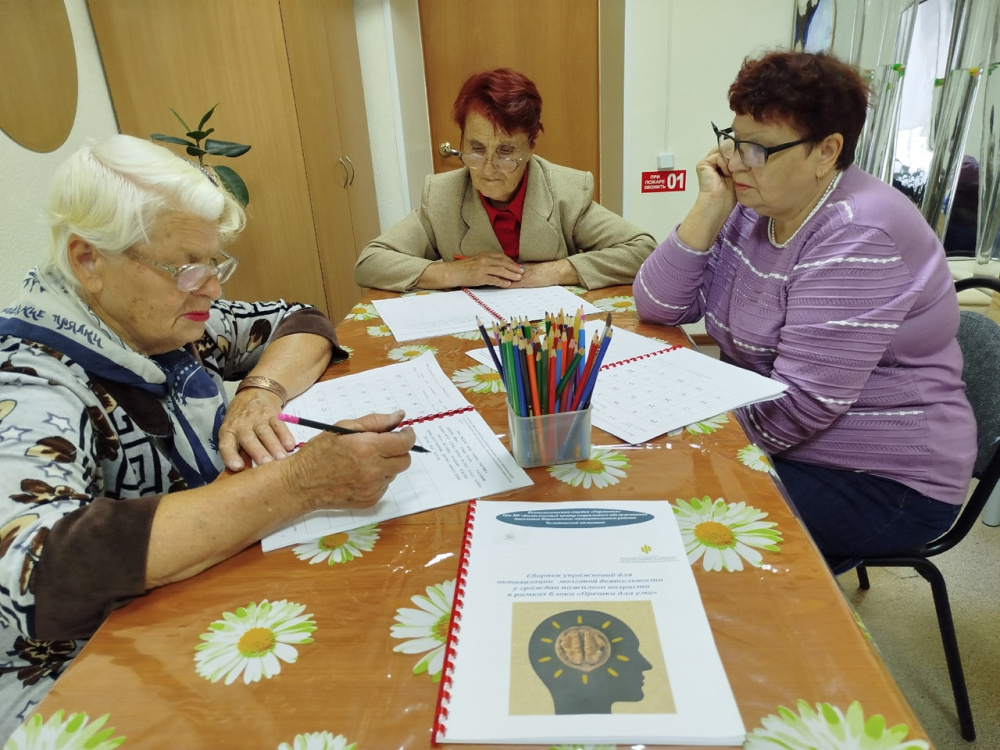 В психологической студии «Гармония» на занятиях по профилактике когнитивных нарушений (в рамках блока «Орешки для ума») с гражданами пожилого возраста используется печатный сборник упражнений для активации мозговой деятельности. Комплекс упражнений направлен на поддержку интеллекта и мышления, памяти и восприимчивости. В сборнике подобраны упражнения, которые основаны на эффективных методиках Рюта Кавашима, Вальтера Шульте, Бенджамина Бурдона для активации мозговой деятельности и профилактики деменции.