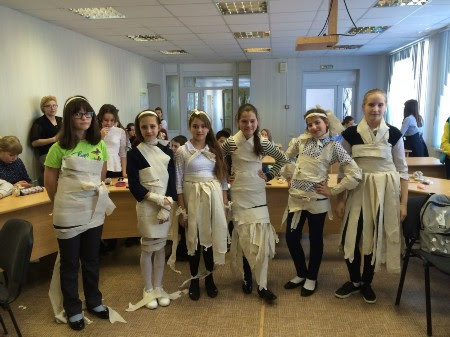 Особенно запомнились конкурсы «Создание костюма из бумаги», «Подари вторую жизнь бросовому материалу», где из пластики бутылки ребята создавали новые предметы, «Сиамские близнецы», участницы которого, сцепившись руками должны были создать причёску модели. Интересные и познавательные викторины о профессиях, пословицы, загадки не оставили равнодушными никого.