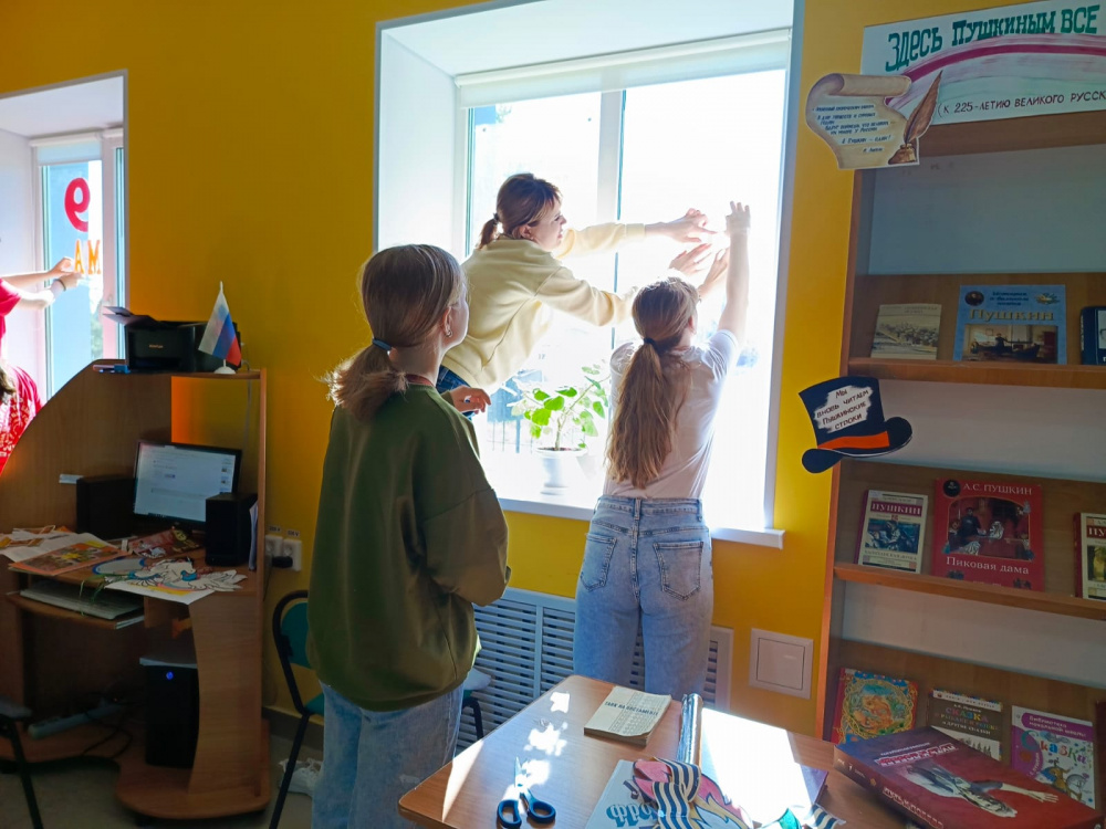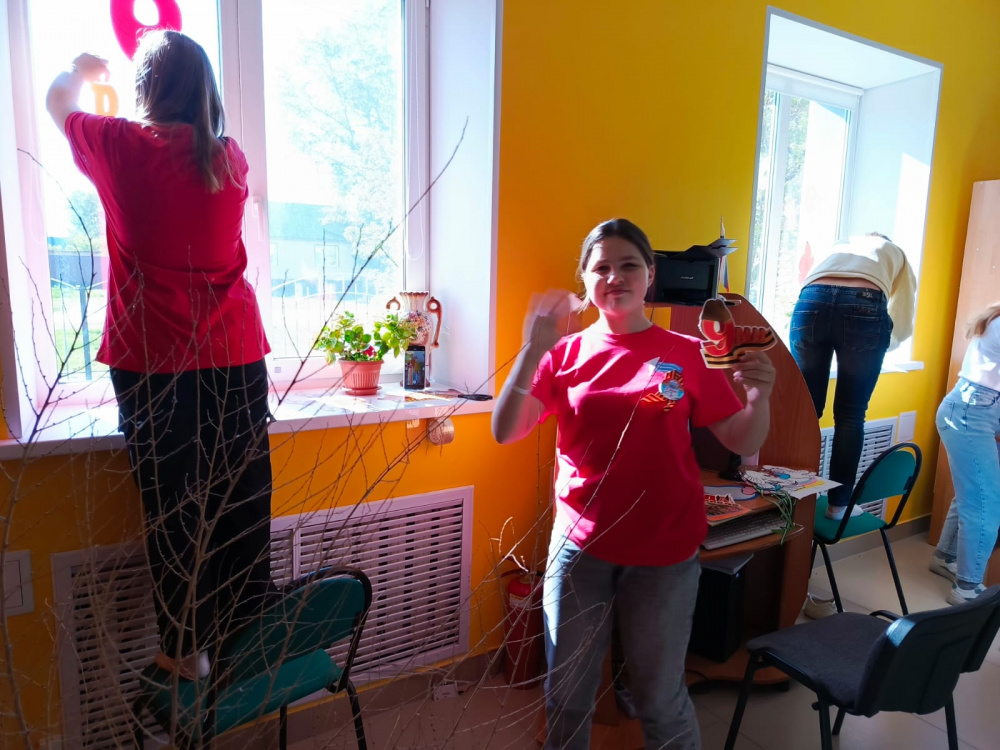 Помощь в украшении окон оказали активисты местного отделения «Движение Первых».