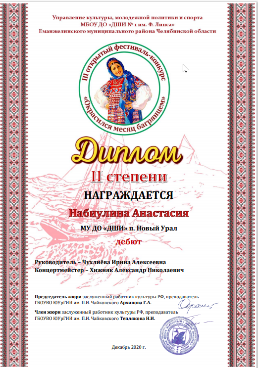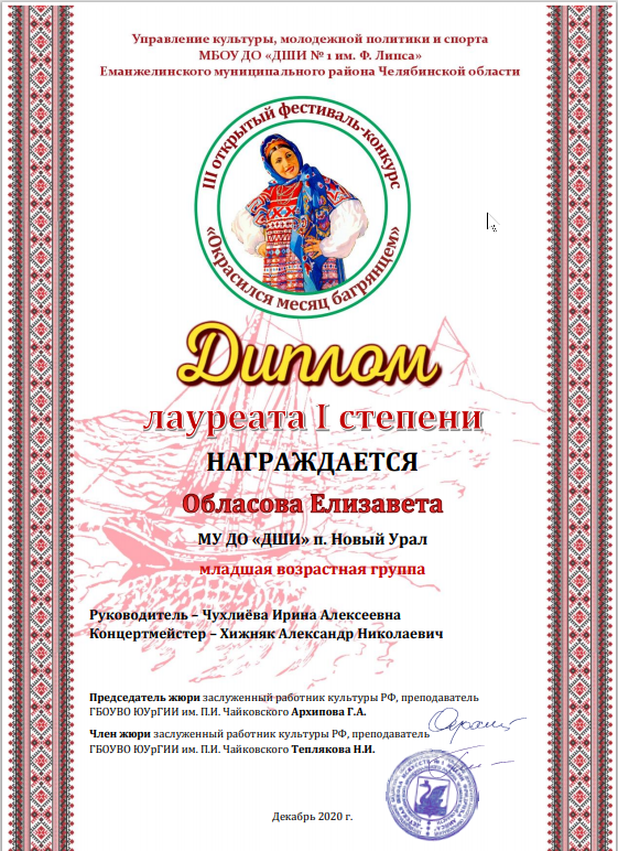 Поздравляем учащихся хорового отделения с победой в III заочном фестивале - конкурсе исполнителей народной песни, посвященный памяти Л.А. Руслановой "ОКРАСИЛСЯ МЕСЯЦ БАГРЯНЦЕМ"