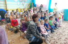 Далее ребята играли в игру поймай хлопок, что позволило разогреть ладошки в такую пасмурную погоду за окном. Ну и никак не обошлось без театрализации коллектива «Элегия».